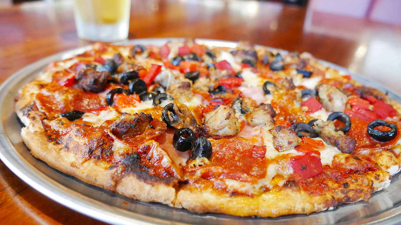Pepperoni, Italian sausage, Canadian bacon, sautéed garlic mushrooms, black olives, roasted bell peppers. $20.99