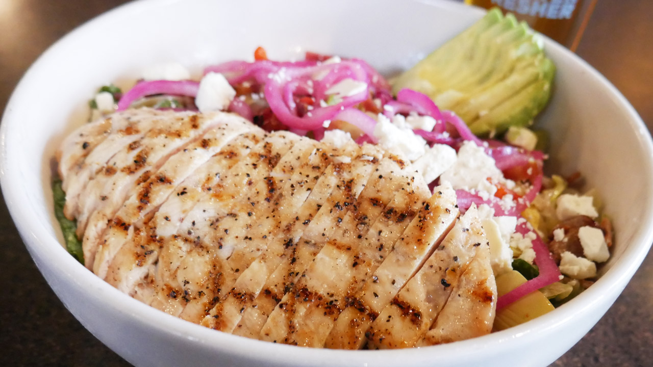 mixed greens, crumbled feta, artichoke heart, roasted red bell pepper, bacon, avocado, pickled red onions, garlic artichoke dressing $14.99