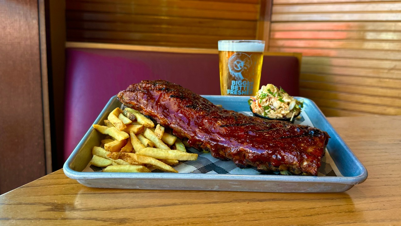 Slow-braised in Big Red’s IPA and spices, finished on the grill with RAM BBQ sauce. Served with fries.