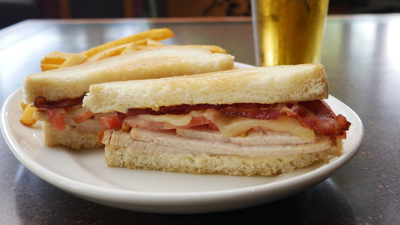 Sliced turkey, Wisconsin Havarti, garlic mayo, tomato, and applewood-smoked bacon. Served on grilled sourdough. $17.99