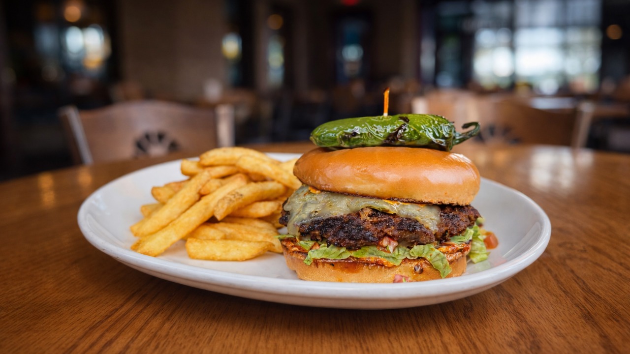 Beef Chorizo patty, smoked Anaheim pepper, roasted green chiles, pepper jack, chipotle mayo, pico de gallo, cilantro pesto. $18.49