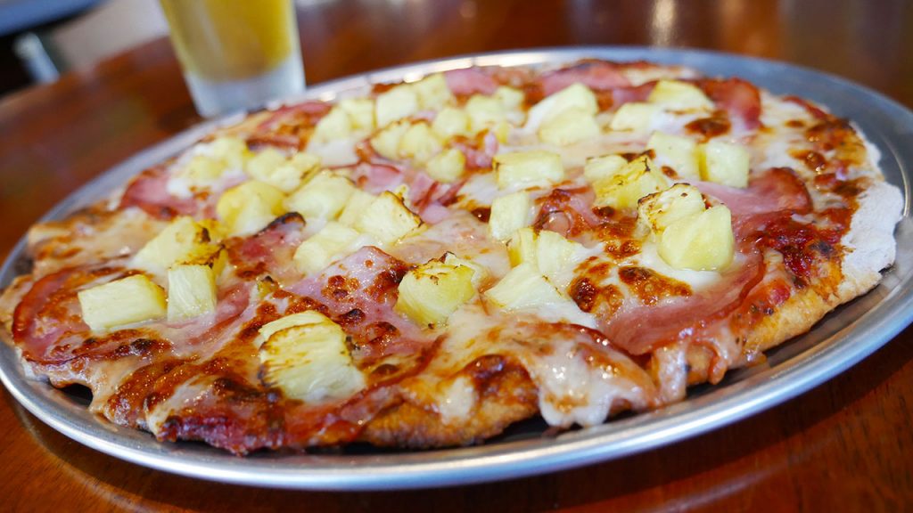 RAM BBQ sauce, fresh pineapple, pork carnitas, red onion, chopped bacon, and Canadian bacon. $17.75